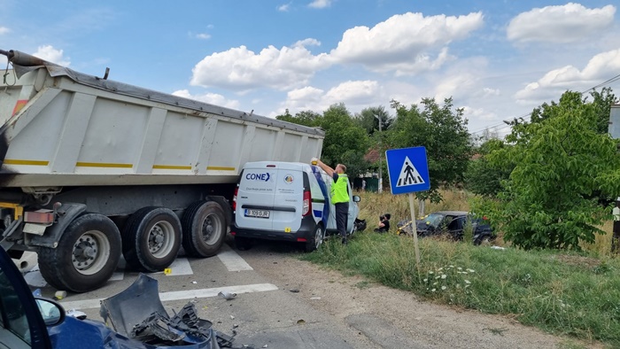 TIMISOARA. Grav accident de circulatie pe soseaua ce leaga Timisoara de Buzias. 4 masini si un camion s-au izbit violent in apropiere de localitatea Albina.