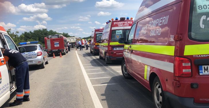 La locul tragediei au intervenit pompierii din cadrul Detasamentului 1 Timisoara cu o autospeciala de prima interventie si comanda, o descarcerare, 1 autospeciala pentru transport victime multiple, trei echipaje SMURD si trei ambulante SAJ.