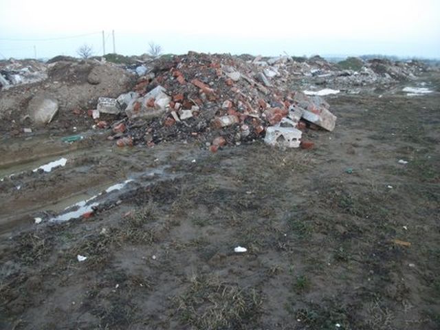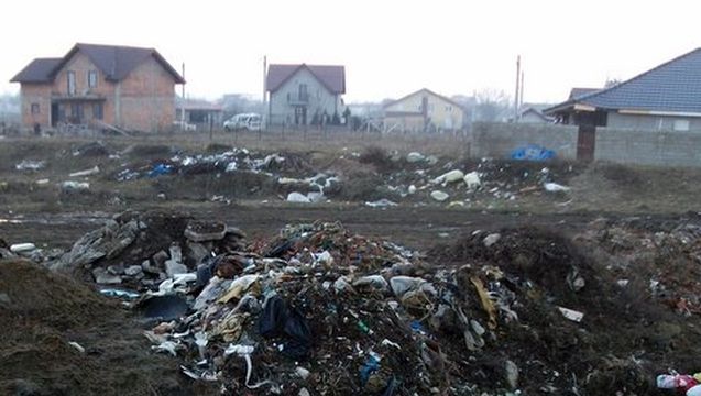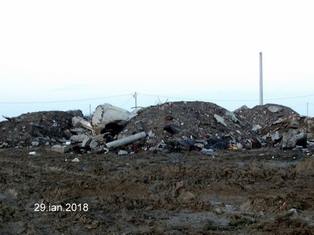 In imagini se pot vedea muntii de gunoaie, unele provenite din contructii, care aproape ca acopera casele in apropiere.