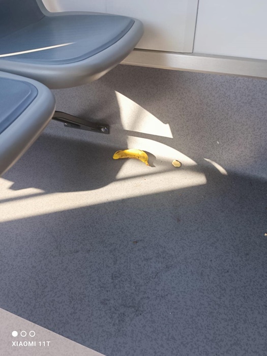 Cei care au urcat in tramvai au mancat banane, insa nu au avut decenta de a-si lua cu ei cojile si a le arunca in cosurile de gunoi din statii.