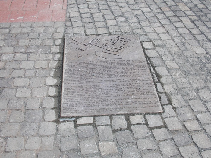 TIMISOARA. La doua zile dupa amplasarea in piata Libertatii a unei harti in miniatura care prezinta centrul istoric, o placheta metalica a fost postata ca cativa metri distanta. Pe aceasta sunt gravate vestigiile istorice ingropate sub pavajul din piata.