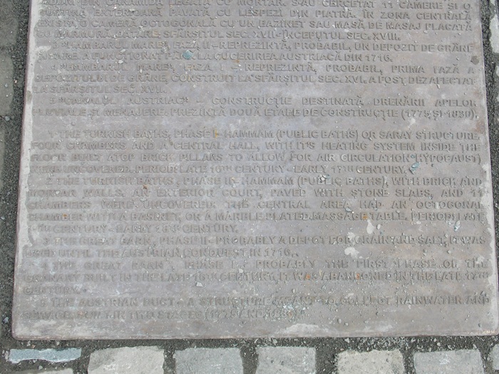 In prezentarea scrisa se vorbeste si despre doua hambare descoperite de arheologi, dar si despre “canalul austriac”, construit pentru drenarea apelor pluviale si menajere, care a fost realizat in doua etape, in 1775 si 1830.