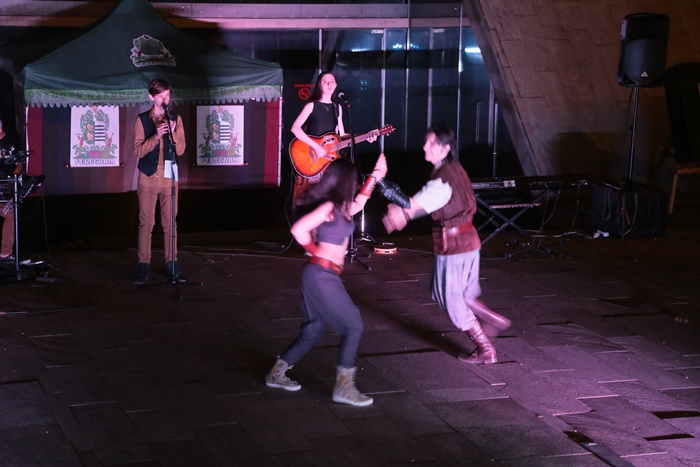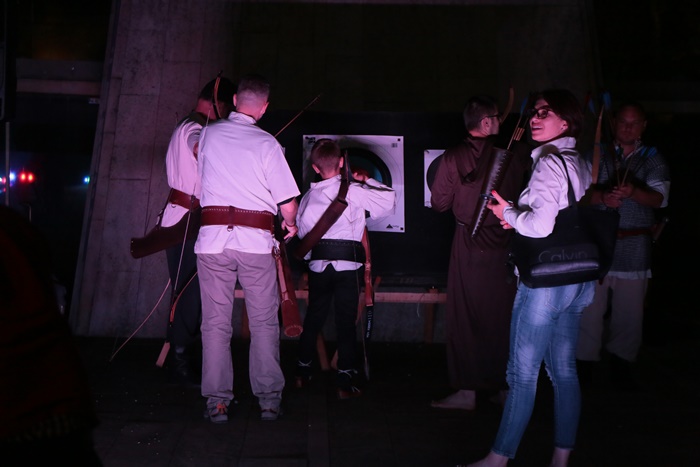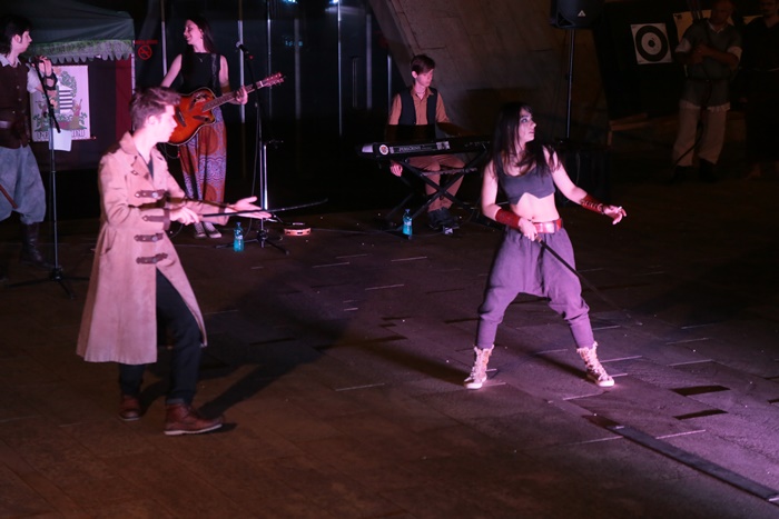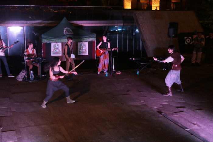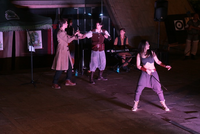 Seara a fost punctata de momente artistice: un concert de muzica istorica live in Curtea Miracolelor sustinut de formatia Peregrinii, un duel scenic si maiestrie cu arcul prezentata de TM Archery, carora li s-a adaugat o prezentare interactiva de arme.