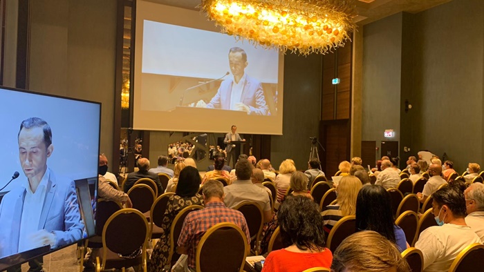 In sala, conferinta de alegeri se desfasoara conform programului. 17 candidati s-au inscris pentru functia de presedinte al organizatiei de Timisoara, insa e de asteptat ca majoritatea sa se retraga si sa ramana doar doi in competitie.