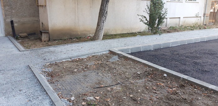 Ca si in cazul altor parcari amenajate in ultimele luni si aici au fost betonate si ridicate trotuarele, dupa care au fost si asfaltate.