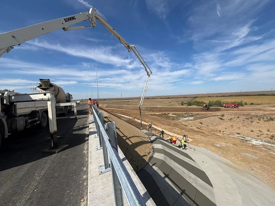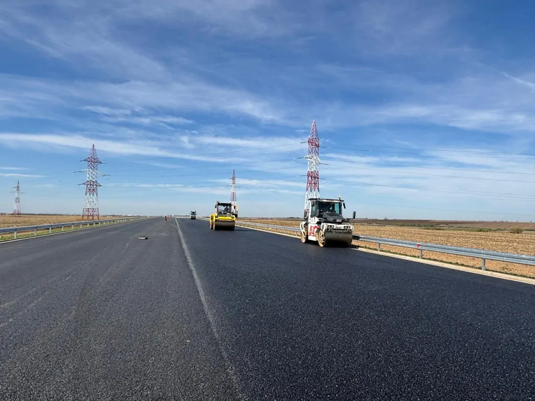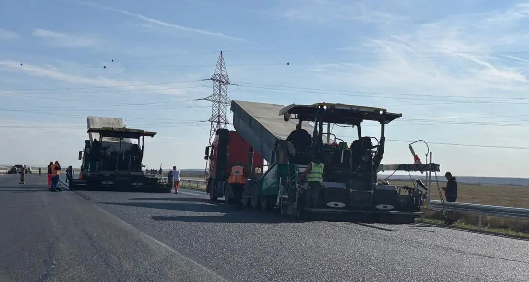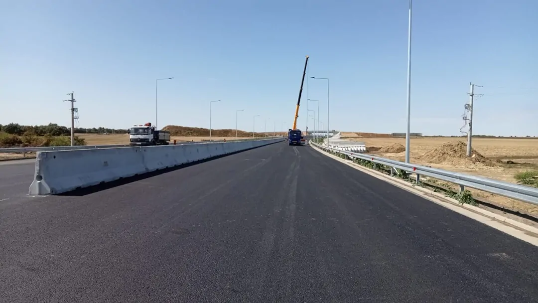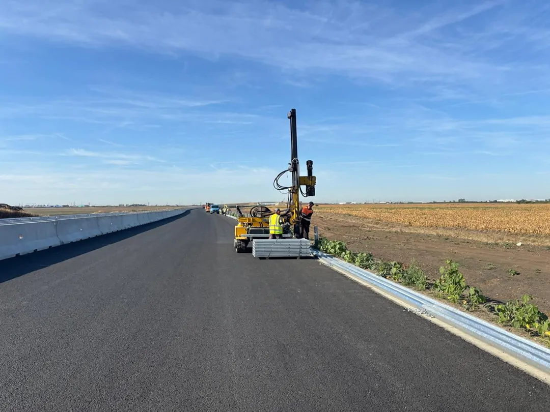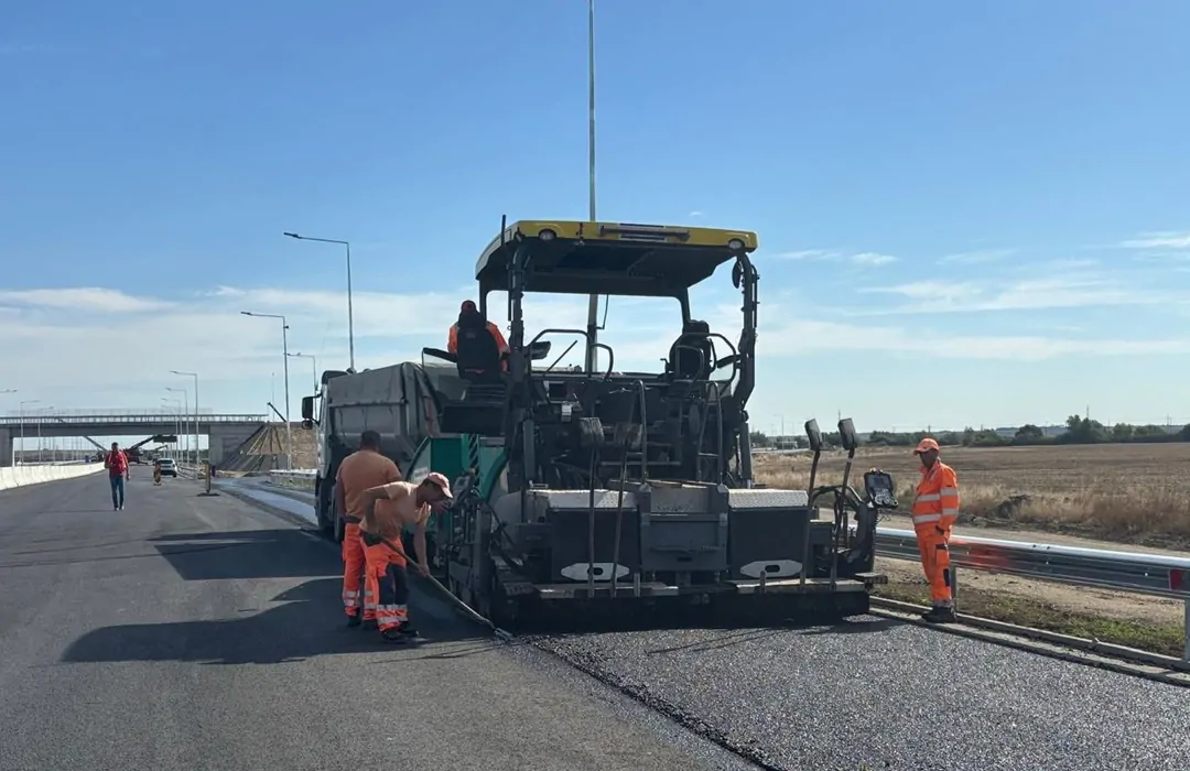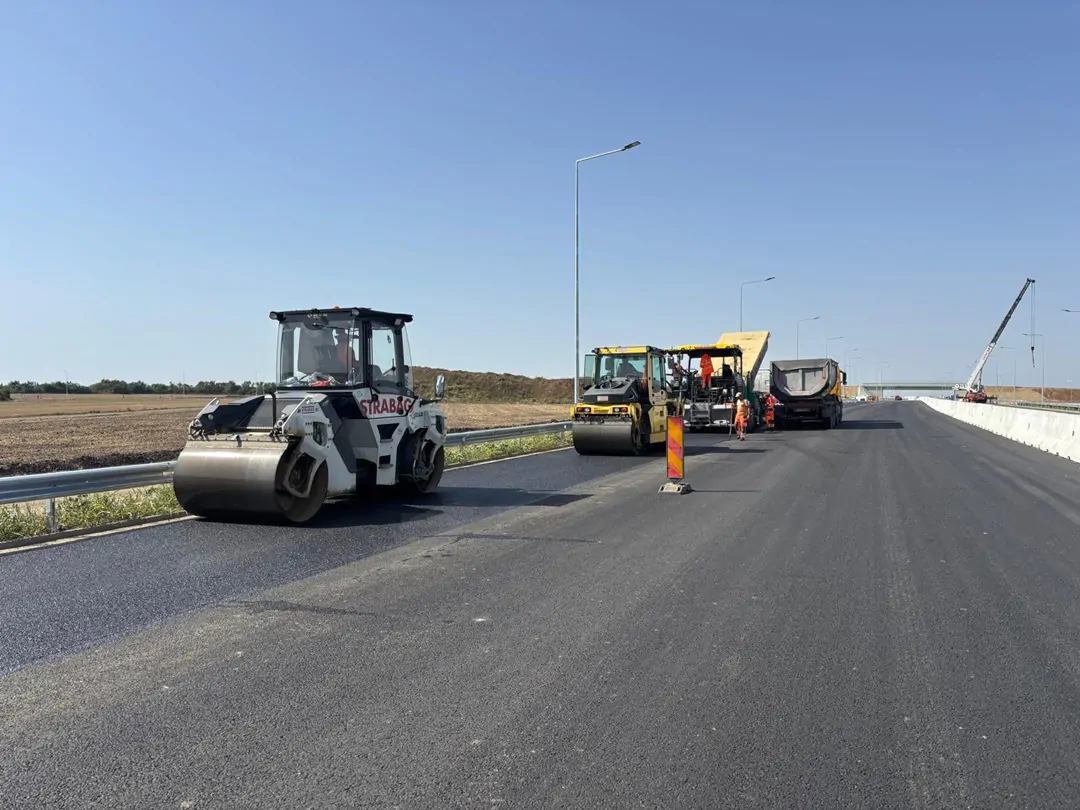 “Pe șantierul drumului de legătură DN 69 – #A1, la final de lună august, s-a așternut aproape 90% din stratul final, de uzură, iar montarea de parapet median de beton, care va despărți cele două sensuri de circulație, este aproape de 80%.