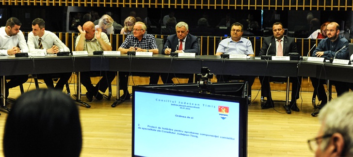 La nivelul Consiliului Judetean Timis sunt 7 comisii de specialitate: Comisia Economica, Comisia de Urbanism, Comisia de Cultura, Invatamant si Tineret, Comisia de Sanatate, Comisia de Administratie publica locala, Comisia de relatii pentru cooperare interna si externa, Comisia de Agricultura.
