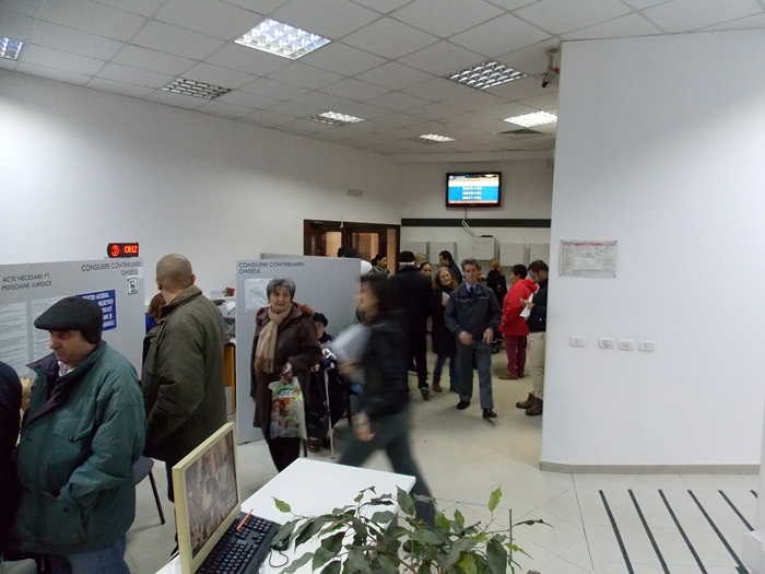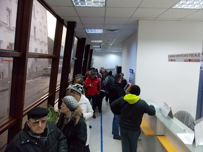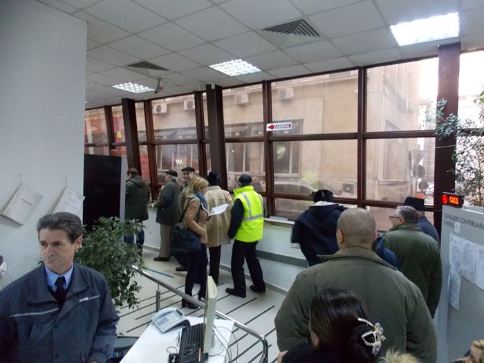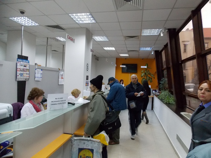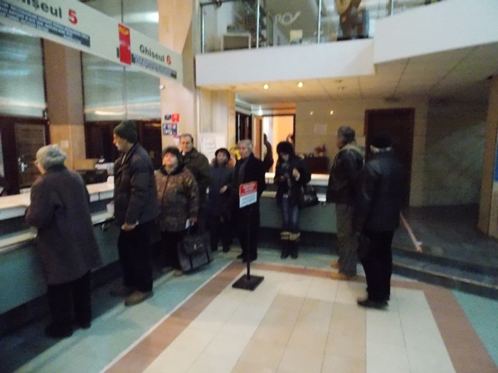 O prezenta prea numeroasa la plata taxelor si impozitelor nu a fost nici la sediul Postei Romane, unde la prima ora a zilei mai putin de 15 oameni s-au prezentat la ghiseu pentru achitarea contributiilor, si se lucra cu doua ghisee deschise pentru strangerea darilor.