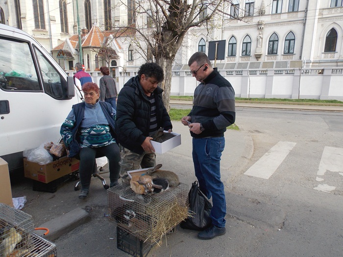 TIMISOARA. Odata cu apropierea sarbatorilor pascale, in piata de animale de la Timisoara au aparut si comerciantii de iepuri vii.