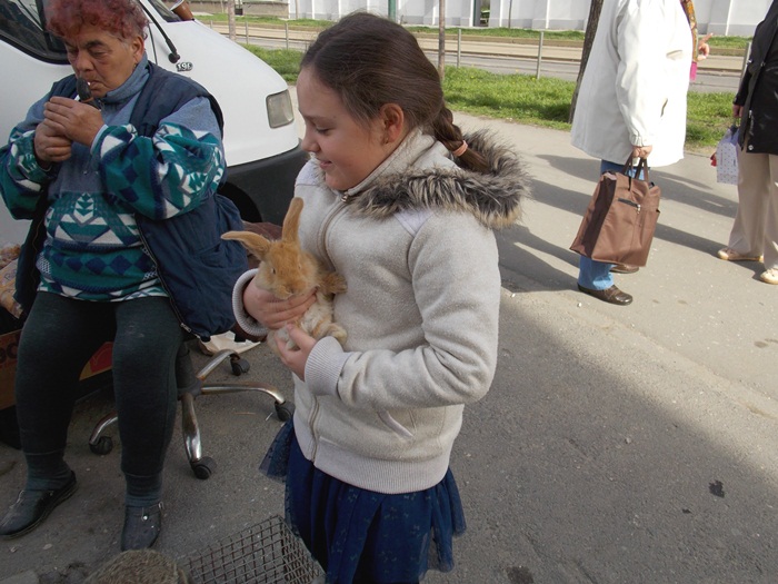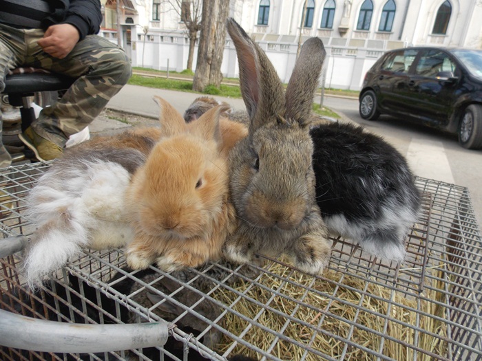 Mai multi vanzatori au venit in piata de animale cu iepuri de toate marimile si culorile pentru a-i imbia pe timisoreni sa cumpere un urecheat simpatic cu care sa le coloreze Pastele piticilor de acasa.