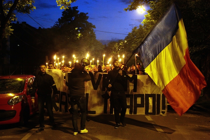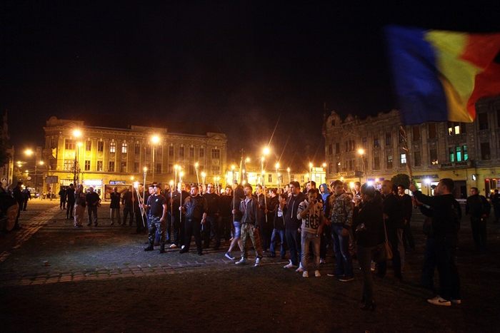 Dupa discursuri, protestatarii au aprins tortele si au pornit spre Piata Traian scandand sloganuri precum „Nu vrem clanuri tiganesti in orase romanesti„.