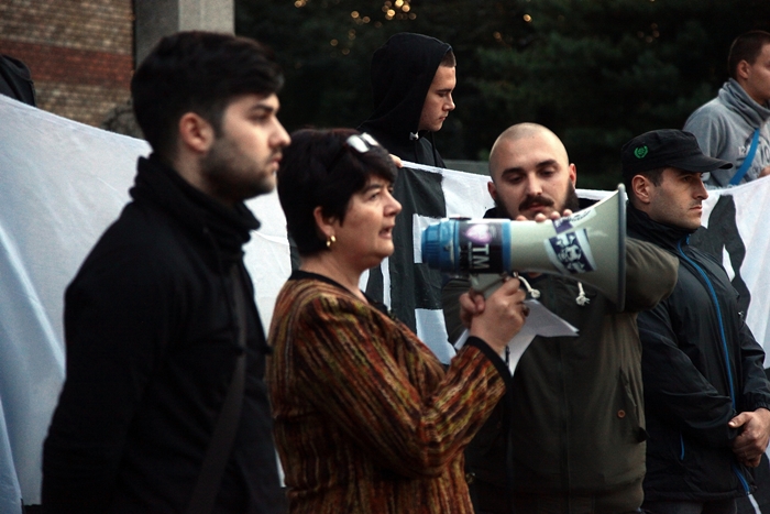 Inainte de a pleca in mars au fost sustinute discursuri pe treptele Catedralei, iar avocata Carmen Obarsanu, ea insasi victima a clanurilor de rromi din Timisoara, le-a spus protestatarilor ca „fara gulere albe, mafia imobiliara nu ar fi existat„.