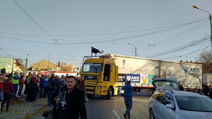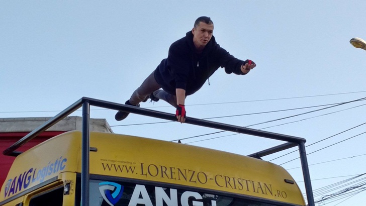 TIMISOARA. Magie, suspans si uimire, sambata, la Timisoara! Lorenzo Cristian a oferit in premiera un act artistic provocator: a levitat deasupra unui camion aflat in mers, fara sofer.