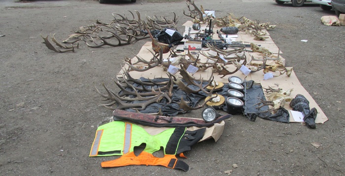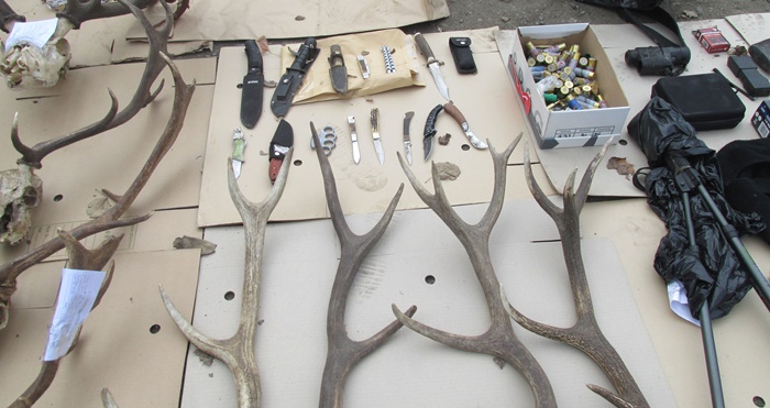 UPDATE: In urma perchezitiilor, politistii au ridicat in vederea continuarii cercetarilor 3 arme (2 letale si una neletala) detinute ilegal, 159 de cartuse, 7 lunete , 3 camere termoviziune, 6 amortizoare, 6 proiectoare, 3 binocluri, 25 de cutite de vanatoare, 52 de trofee, 4 jante, 5 cutii cu materiale pirotehnice, 6 lanterne de vanatoare, 10 telefoane mobile, 1 aparat cu electrosocuri si 1 trepied de arma.
