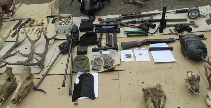 Astfel, la perchezitiile dintr-o locuinta a unui barbat, la Herneacova, a fost gasita o arma cu luneta si alta cu amortizor, una dintre acestea avea un glont pe teava. Armele erau folosite la braconaj si pentru ele nu exista permis de port-arma.