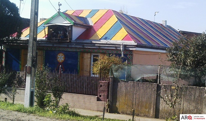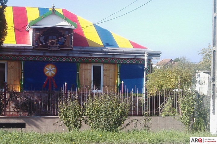 ARAD. O casuta din localitatea aradeana Vladimirescu atrage atentia tuturor celor care ajung in zona. Este viu colorata, cu desene pe peretii laterali si cu acoperisul pictat in culorile tricolorului.