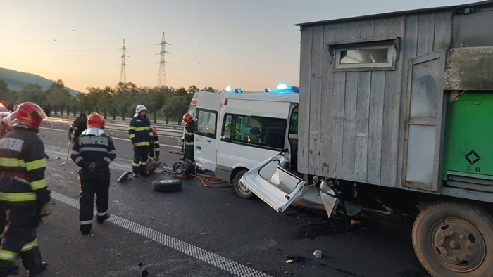 Evenimentul rutier a avut loc intre Deva si Ilia. Un microbuz in care se afla o familie cu trei copii s-a izbit de remorca unui tractor. Impactul a fost atat de puternic incat mama micutilor a murit pe loc.