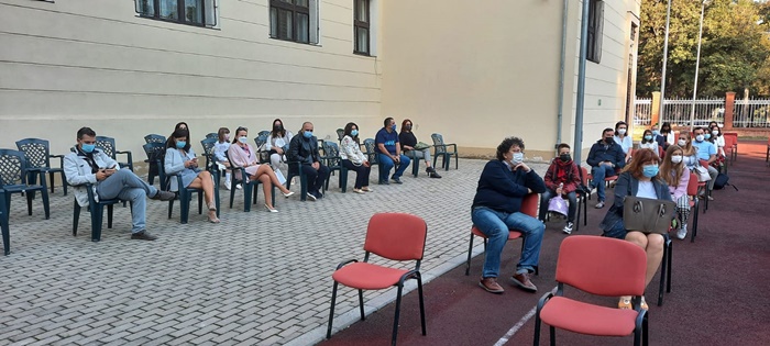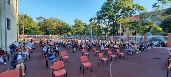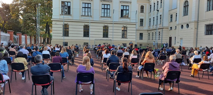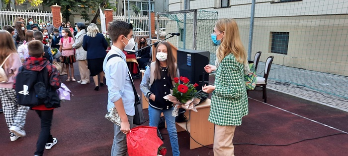 Dupa ce li s-a urat bun venit din partea conducerii scolii, a reprezentantilor consiliului de parinti, consiliului elevilor sau a reprezentantului Politiei, elevii de clasa a V-a s-au incolonat si si-au urmat dirigintii in clase. Parintii nu au avut voie sa intre in scoala.