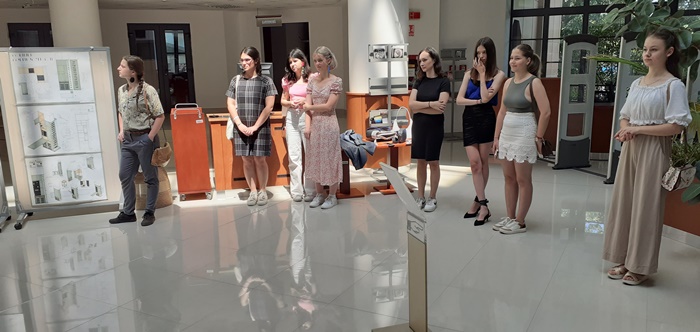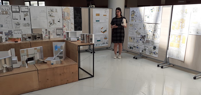 În expoziție, care va rămâne în holul BUPT până la mijlocul lunii iulie, se regăsesc cele mai bune proiecte de la Tema 2 a materiei (Proiectul ce tratează întreaga amenajare a apartamentului) și proiectele de nota 10 de la Tema 3, cea care tratează problema rezolvării și detalierii mobilierului multifuncțional.