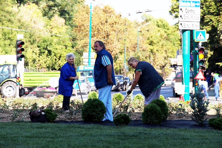 “E aproape gata totul la nivel de detaliu. Ati putut vedea aranjamentul din insula giratiei. Acum nu e atat de spectaculos cum va fi in primavara, cand trandafirii vor inflori. Sunt speciali, cresc uniform pe verticala si din ei vor deriva foarte multe ramificatii. Toata zona va fi acoperita de floare, nu se va mai vedea pamantul. Ne-am gandit sa plantam trandafiri in acea zona astfel incat sa reproducem harta cetatii Timisoarei. Nu am fost multumit de ce a iesit si am cerut azi ca pietrisul alb pus in acele proeminente sa fie luat si in locul lui sa se planteze in continuare trandafiri. Sunt convins ca ce va rezulta va fi mai frumos si va avea aspect de spatiu unitar. Tot ce va fi acolo va aduce in mod clar cu reprezentarea hartii cetatii Timisoarei. Asa, ai impresia ca e un oval cu proeminente