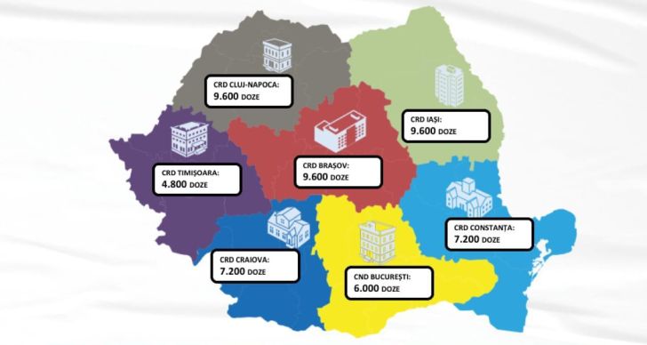– Centrul Național de Stocare Bucuresti: 6.000 doze;