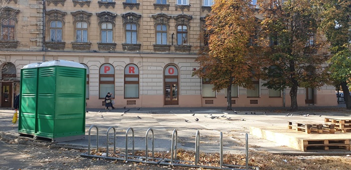Cladirea ce margineste scuarul urmeaza sa fie renovata si iluminata arhitectural, iar din scuar vor disparea toate gheretele care exista in prezent.