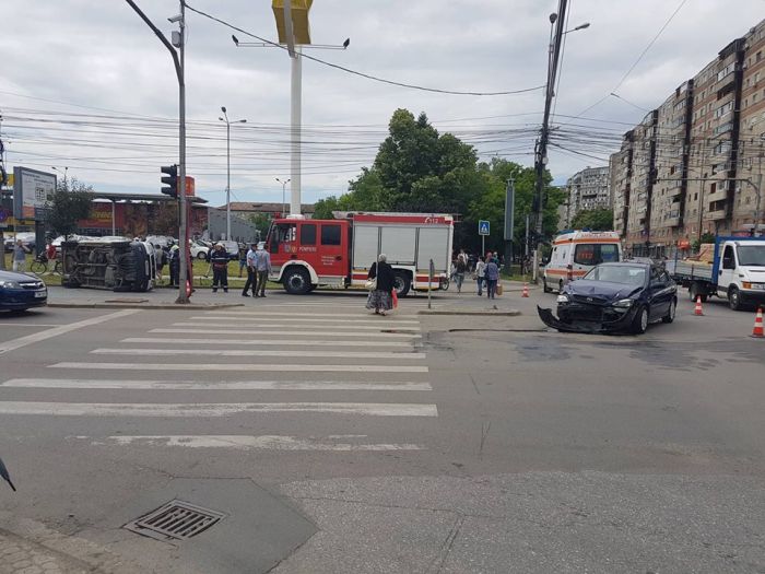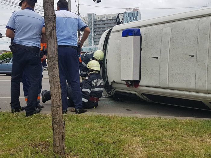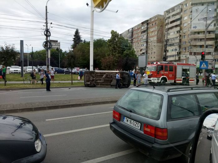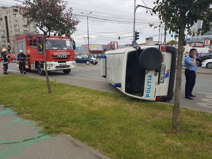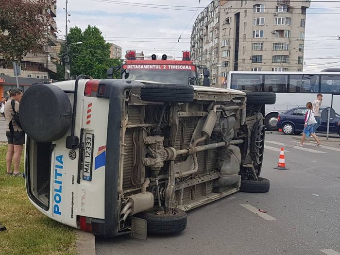 TIMISOARA. Duba de Politie, aflata in misiune, rasturnata intr-o intersectie din Timisoara. Aceasta a fost isprava unei soferite, iar accidentul s-a intamplat pe strada Gheorghe Lazar, colt cu strada Circumvalatiunii.