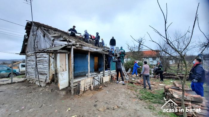 “Provocarile au fost foarte mari: acoperisul a trebuit refacut, tavanele stateau sa cada, starea peretilor din vaiuga era una foarte proasta in conditiile in care timpul avut la dispozitie a fost foarte scurt. Mobilizarea a fost una absolut fenomenala. Toti voluntarii, cu sau fara experienta in constructii, s-au pus pe treaba si au ajutat cum au putut. Ne-am concentrat pe structura casei si am tras tare pentru ca in aceeasi seara, Nicoleta, fratele si familiile lor, in total 4 adulti si 6 copii, trebuiau sa doarma aici. Pentru ca ziua e scurta, ne-a prins intunericul insa chiar si asa nu ne-am oprit pana nu am finalizat acoperisul, terminat de construit holul, montat toate ferestrele, refacut complet reteaua electrica, reparat si placat tavanele din cele doua camere, construit wc-ul si multe altele. Ne-am propus sa lasam in urma o casa functionala, urmand ca de restul amenajarilor sa se ocupe beneficiarii. Si credem ca, toti impreuna, voluntari, donatori, oameni de bine, am reusit sa dam familiei o noua sansa. Va multumim tuturor celor care v-ati implicat!“, transmit cei de la Asociatia Acasa in Banat.
