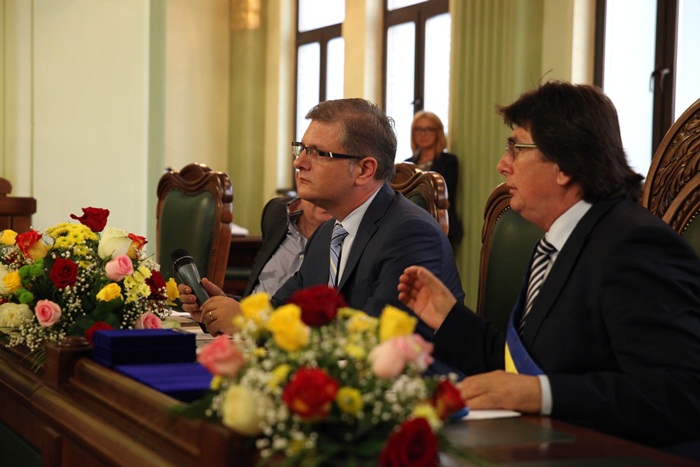 “Cand am venit aici, cand eram o adolescenta si probabil zapacita ca majoritatea adolescentilor, bulversata de lumea noua in care am patruns, am intrat intr-o lume extraordinara, a Politehnicii noastre, in care profesori de valoare, timp de 5 ani, s-au straduit sa creeze din noi ceea ce era asteptat: ingineri cu inalta pregatire. Tot ceea ce am real in viata s-a datorat acestor oameni minunati. Nu am suficiente cuvinte sa spun cat de mult ma induiosez si astazi… profesia de inginer este ceea ce mi-am dorit sa fac in viata… stiti cum se spune: <<omul propune si Dumnezeu dispune>>”, a spus cel mai nou cetatean al orasului.