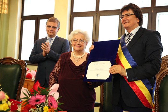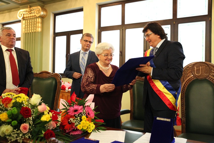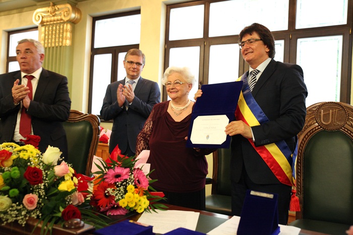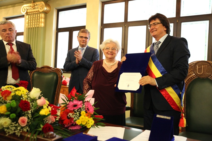Coleta de Sabata, prima femeie rector al Universitatii Politehnica din Timisoara, in perioada 1981 – 1989, cercetator si om de cultura si personalitate stiintifica de renume, a fost vizibil emotionata la momentul primirii titulaturii.