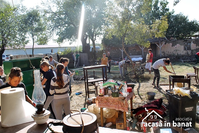 TIMISOARA. A fost forfota mare sambata intr-o gospodarie din Timis unde peste 50 de voluntari au raspuns apelului asociatiei Acasa in Banat si au ajutat la renovarea casei unor batrani de 90 de ani din Semlacu Mare.