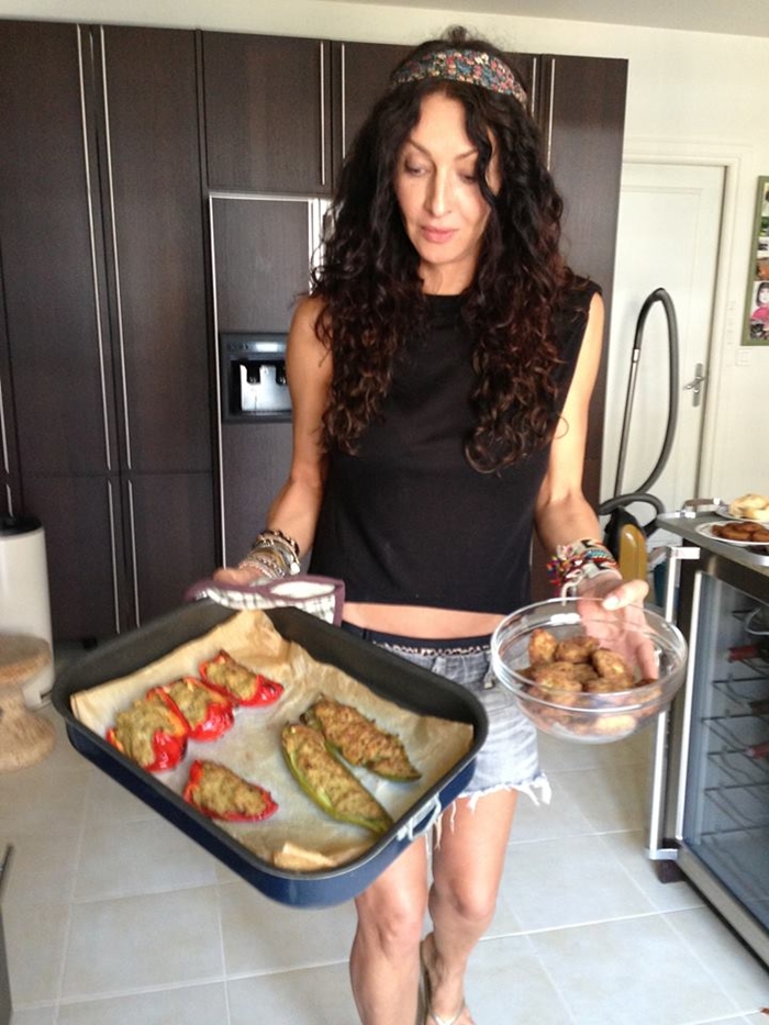 Imbracata lejer si cu o bentita pe cap, Mihaela a decis sa prepare ceva de mancare pentru ea si fiul ei. Astazi, prezentatoarea tv a ales sa faca niste chiftele si legume umplute cu carne tocata, scrie libertatea.ro
