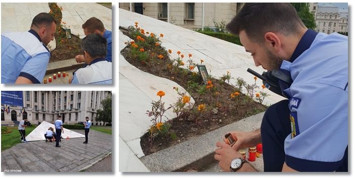 Timp de 1 minut, politistii din teren au oprit autospecialele, au coborat din masini si au lasat in functiune semnalele acustice si luminoase. Ceilalti politisti si-au intrerupt activitatea oriunde s-au aflat la miezul zilei, tot timp de 1 minut.