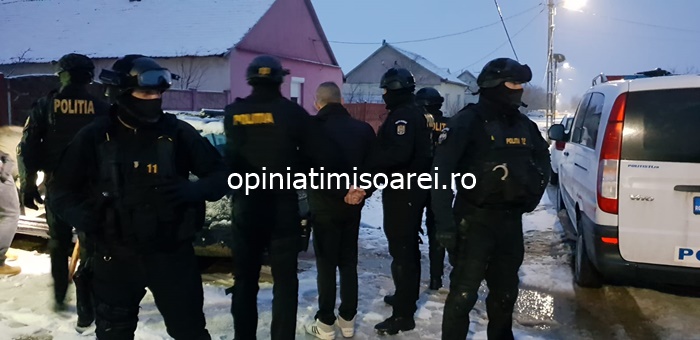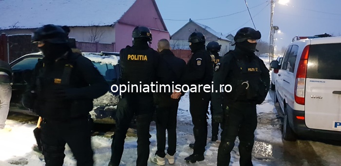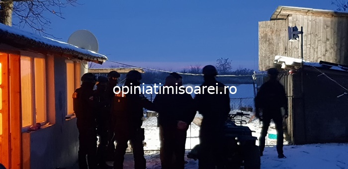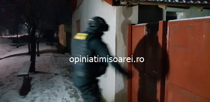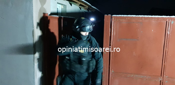 Politistii de la Serviciul Arme Explozivi si Substante Periculoase din IPJ Timis, insotiti de luptatorii de la trupele speciale de interventie, au descins la adrese unde aveau informatii ca se ascund arme si munitie.