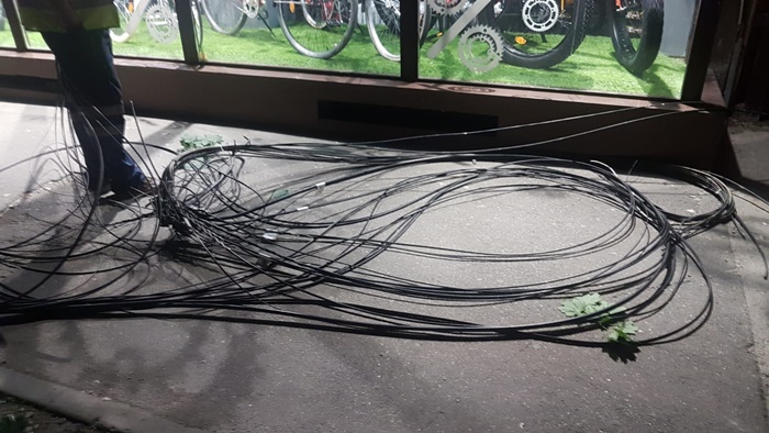 Cum firmele nu s-au grabit sa dea jos cablurile de pe stalpi, angajatii municipalitatii s-au apucat noaptea trecuta sa taie cablurile pe Carol Telbisz, de la Bega pana la bd. I. C. Bratianu; de la Strada Carol Telbisz pana la Str- Alba Iulia (parcare Modex); pe Str. Piatra Craiului de la B-dul Regele Ferdinand I pana la B-dul Republicii; pe Strada Doctor Nicolae Paulescu, dar si partial pe Take Ionescu.
