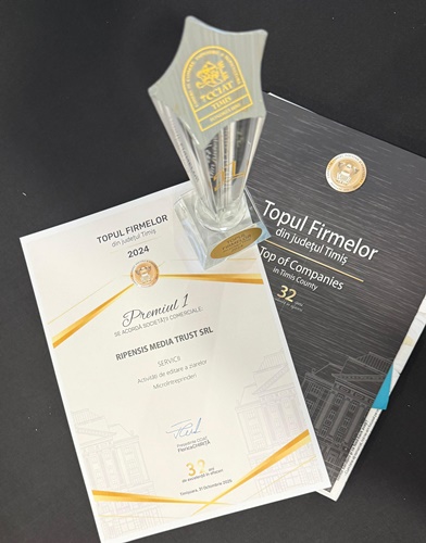 Printre premianții acestei ediții s-a numărat și Opinia Timisoarei. Firma care editează site-ul nostru de știri, Ripensis Media Trust, a luat Locul I la categoria Servicii – Mass Media, profit 2024, în judetul Timis,.