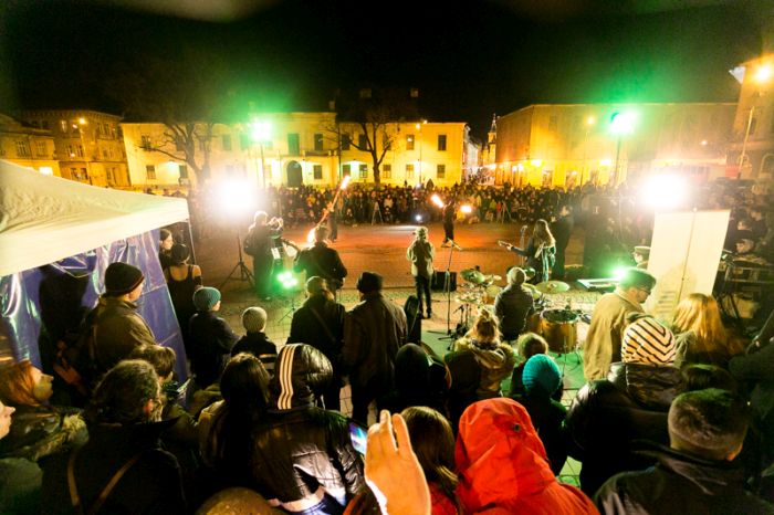 TIMISOARA. Sub sloganul “Daruieste naturii din energia ta”, la Timisoara, oras Capitala Earth Hour in 2013, a fost sarbatorita Ora Pamantului cu un spectacol cu foc sustinut de Amaris Agni, artistii focului si trupa Peregrinii, menestrelii cetatii.