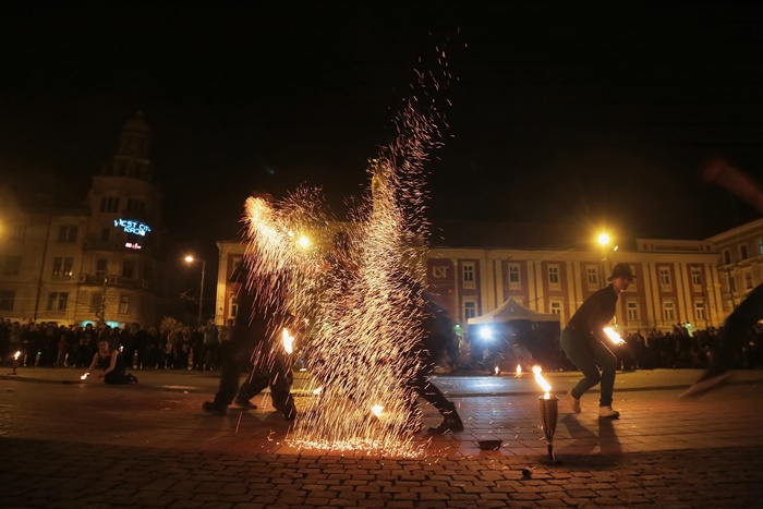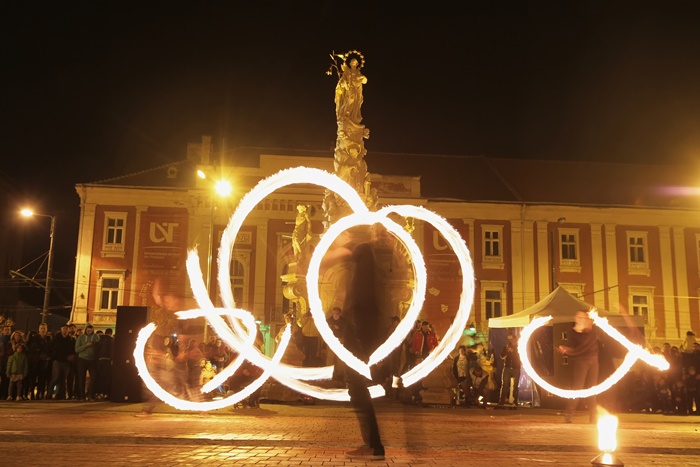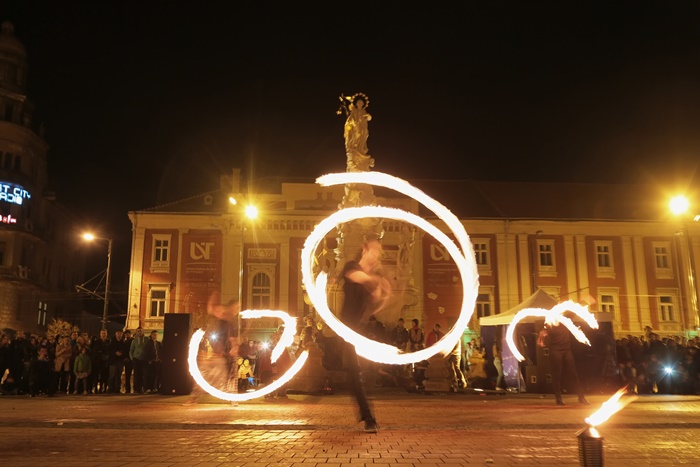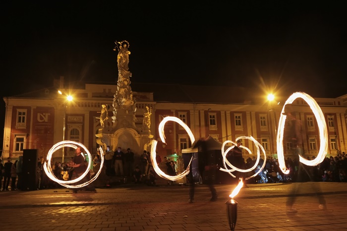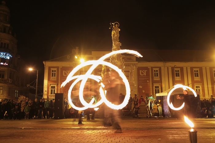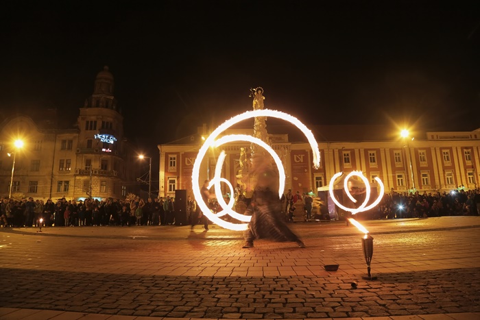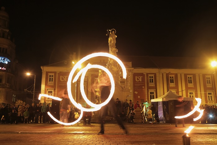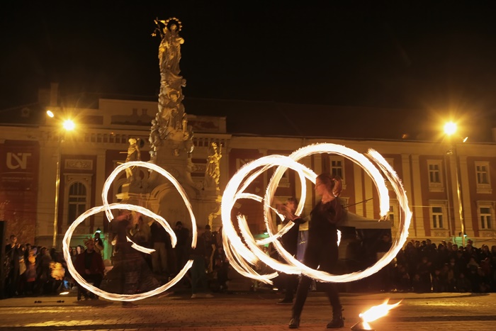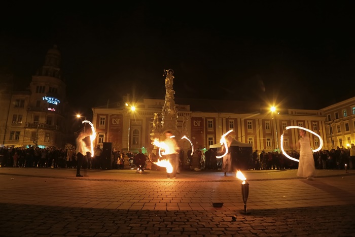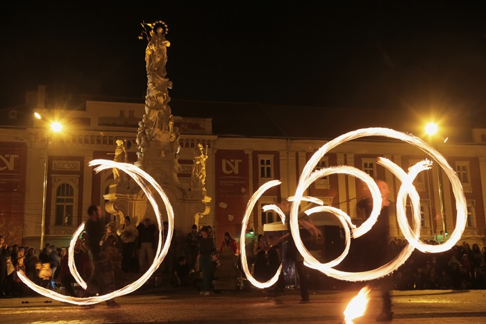 Spectacolul care a adunat timisorenii in centrul orasului a purtat numele “Basmul focului” si a avut la baza basmul romanesc al lui Petre Ispirescu. Evenimentul s-a desfasurat in Piata Libertatii din Timisoara, unde sute de oameni au urmarit impresionati show-ul de foc.