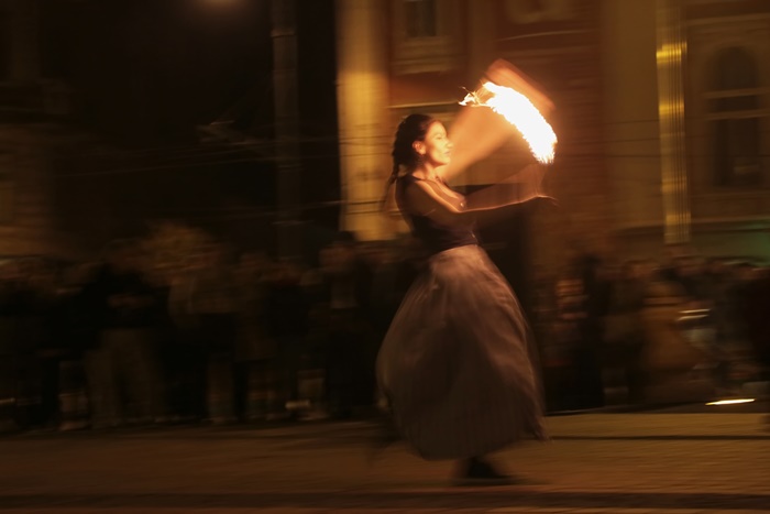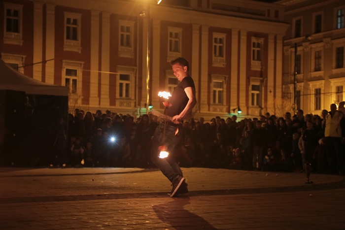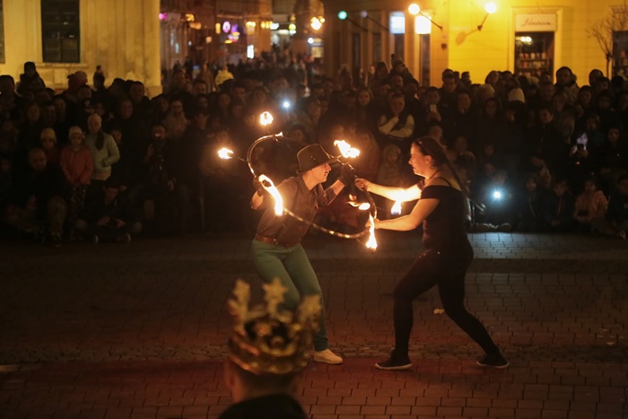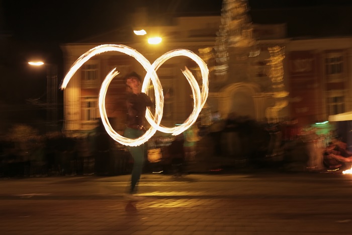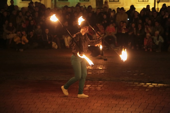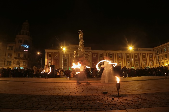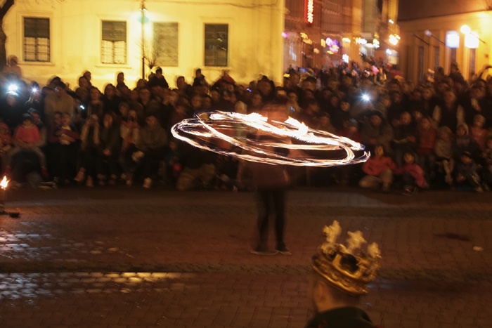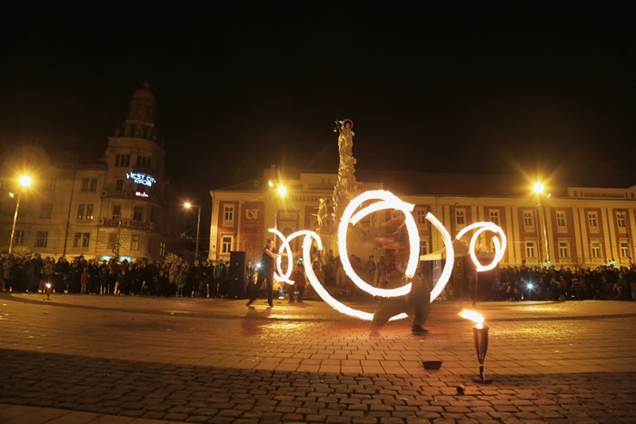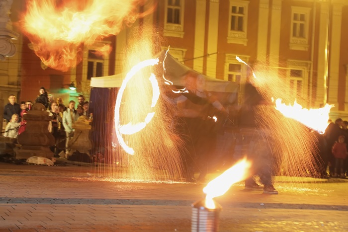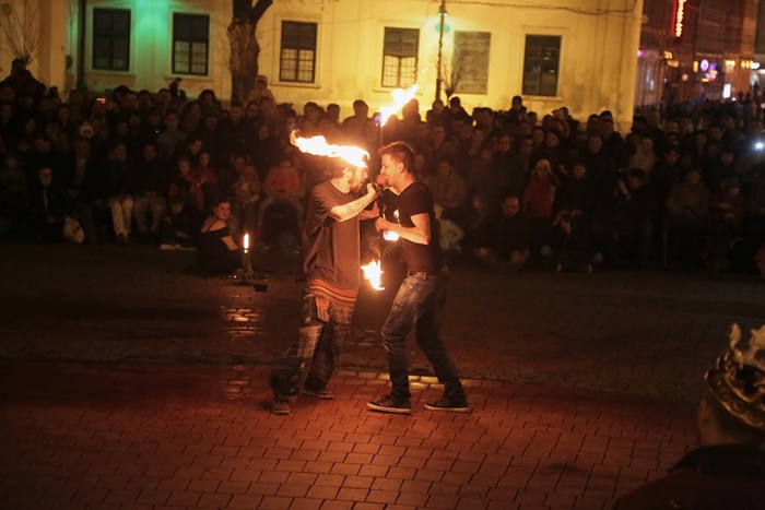 Spectacolul care a adunat timisorenii in centrul orasului a purtat numele “Basmul focului” si a avut la baza basmul romanesc al lui Petre Ispirescu. Evenimentul s-a desfasurat in Piata Libertatii din Timisoara, unde sute de oameni au urmarit impresionati show-ul de foc.