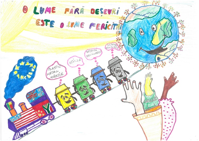 Secțiunea I – învățământ primar : elevii au realizat un desen sau o pictură în care să demonstreze că ştiu cum se realizează colectarea separată a deşeurilor reciclabile și să reflecteze acest lucru în desen.