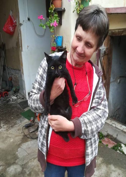 La finalul interventiei, ghemotocul de blana a ajuns, in siguranta, in bratele stapanei.
