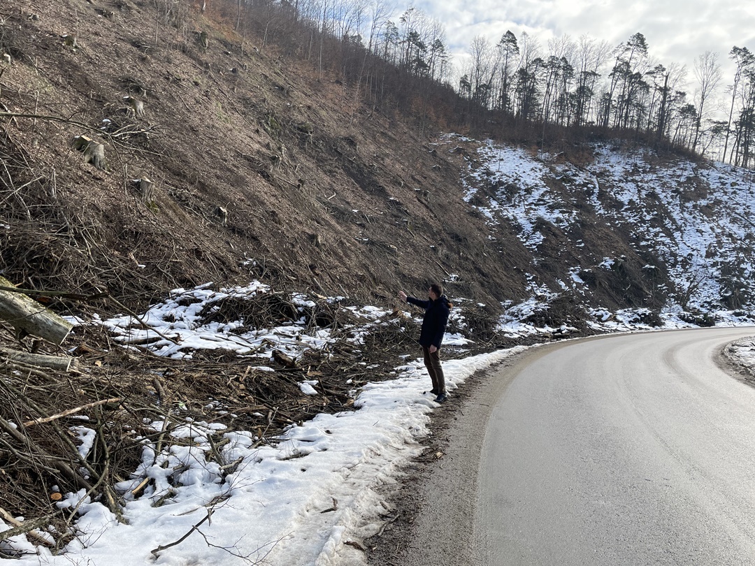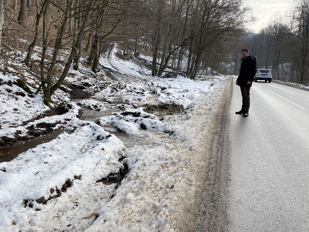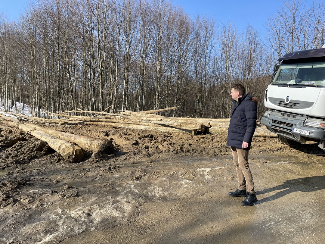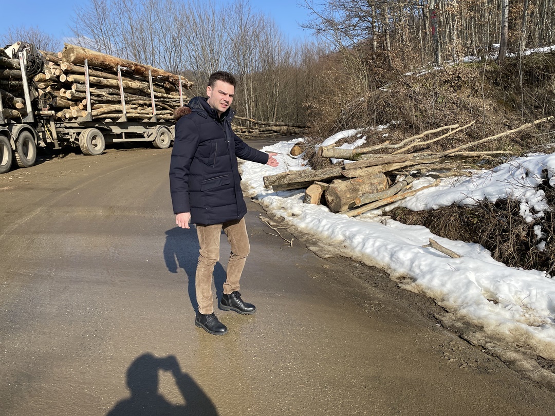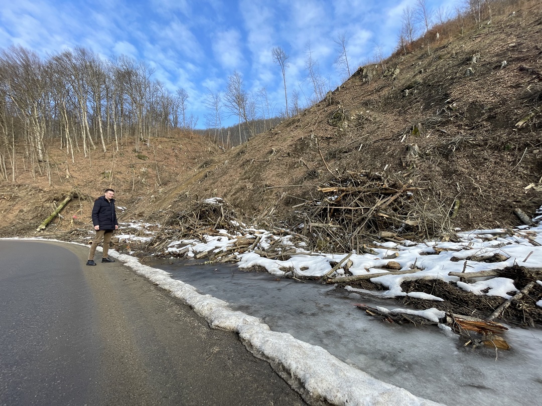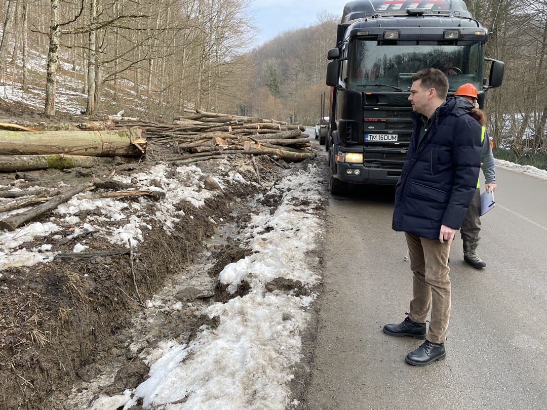 “Am avut ninsori acolo, la Nadrag si s-a depus un strat de gheata care nu a fost deszapezit. In ziua cand a aparut filmarea, am trimis sa verifice, am amendat societatea care ar fi trebuit sa curete drumul, insa partea care ne ingrjoreaza e ca cei care exploateaza lemn din zona au distrus santurile de scurgere a apei pluviale si o parte din drum. In caz de situatii de urgenta, o ambulanta, pompierii, ajung mai greu, fiind doar acel drum judetean de acces in localitate. Am constatat ca politia natinala nu ne-a informat ca sunt lemne care stau pe marginea drumului, unele dintre ele intrau efectiv pe drum. Nici primaria nu ne-a semnalat ca e un pericol acolo, acele lemne depozitate intr-un mod care afecteaza siguranta traficului. Am fost acolo si am fost si mai surprins cad am observat dealuri intregi defrisate masiv, fapt care ne starneste ingrijorare. Avem sub 12 la suta din suprafata judetului acoperita de paduri, suntem printre judetele cu cele mai mici suprafete de padure. Nici Garda de Mediu, nici cea Forestiera nu a verificat situatia. Am folosit Google Earth si am observat ca de la an la an s-a taiat masiv lemn din acele zone. Pe langa partea de siguranta e si ingrijorare privind acest aspect. Comuna Nadrag are potential turistic, avem varful Pades, e o zona atractiva pentru turisti. Aceasta exploatare a lemnului scade si numarul de turisti”, a declarat Alexandru Proteasa.