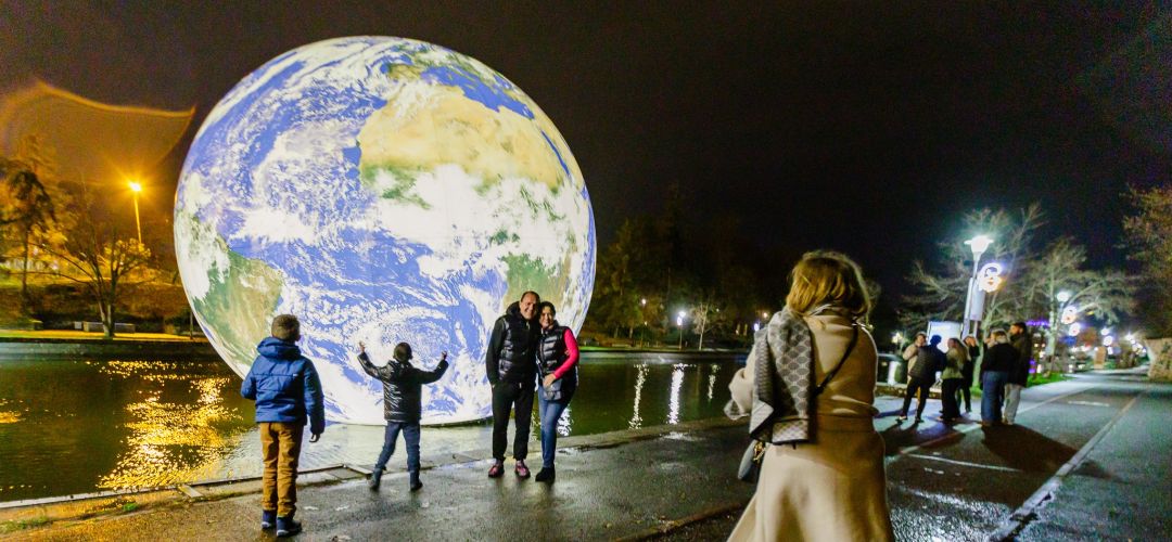 O multime de timisoreni au venit sa admire constructia cu diametrul de 10 metri realizata de artistul britanic Luke Jerram, care invita oamenii sa se opreasca si sa priveasca un spectacol fascinant care sfidează atat gravitatia, cat si conventiile.