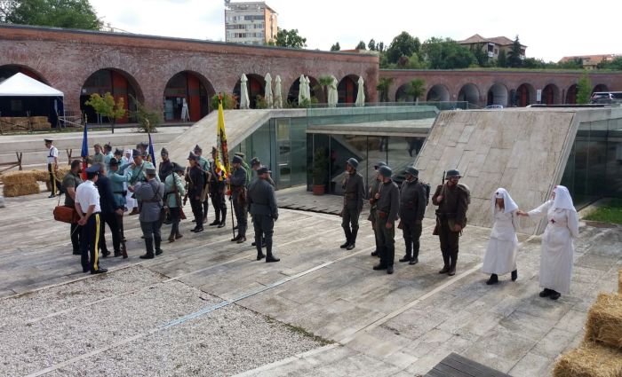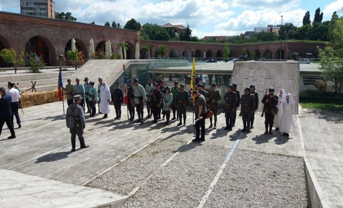 Evenimentul, pus la cale de Muzeul National al Banatului, cu sprijinul Consiliului Judetean Timis poarta numele ‘Primul Razboi Mondial, o reconstituire istorica’, a debutat cu o parada a militarilor, pe traseul Bastionul Theresia – Piata Unirii si retur.