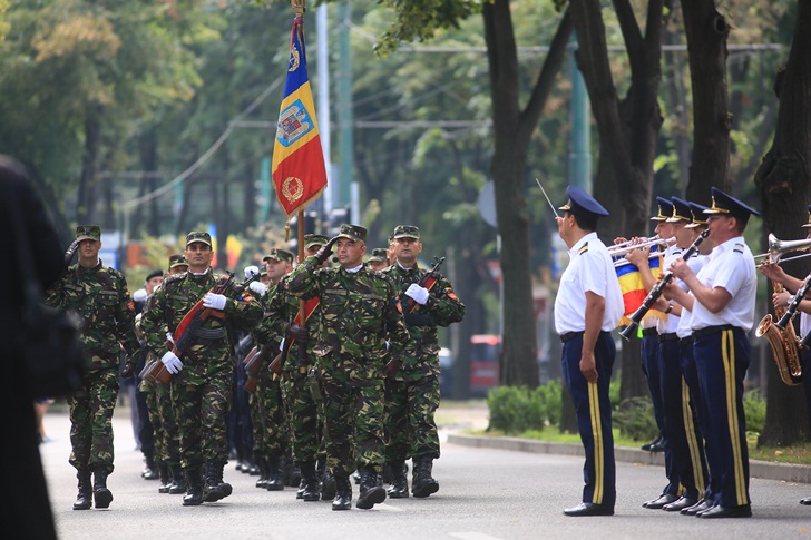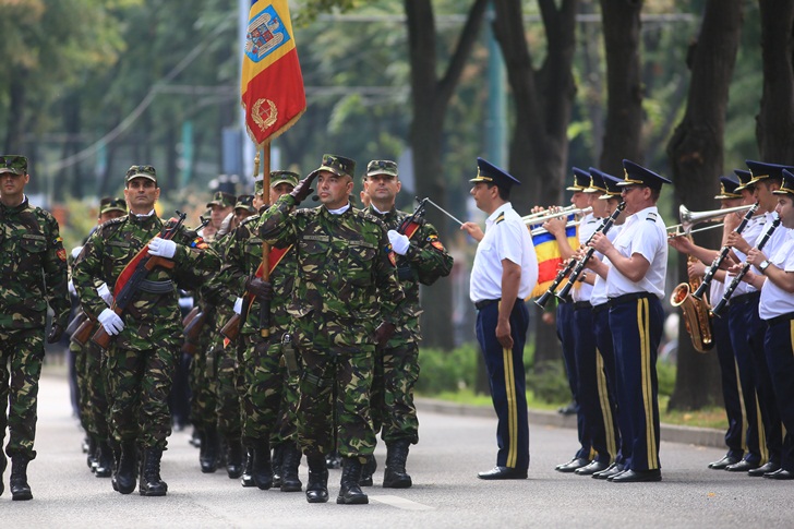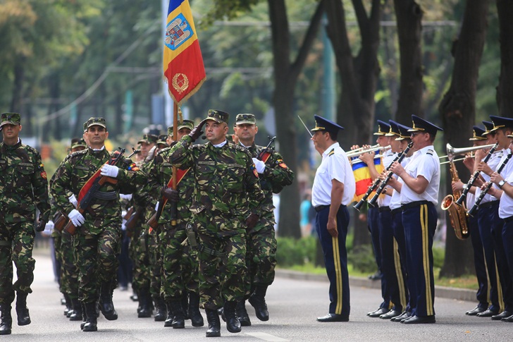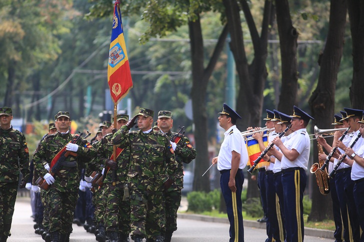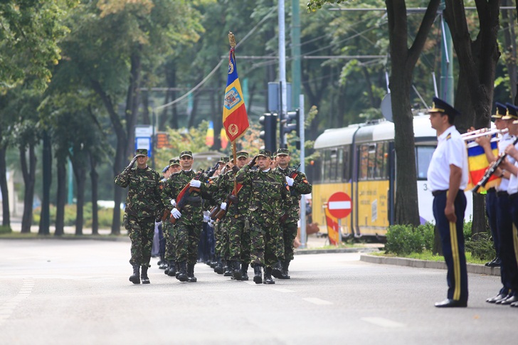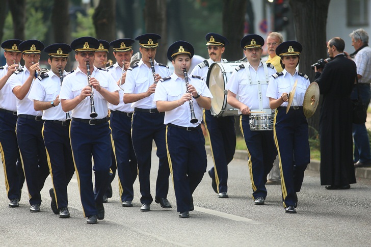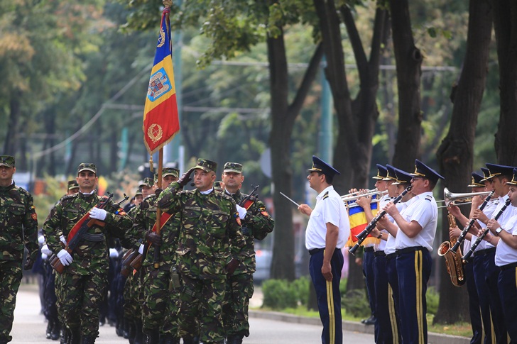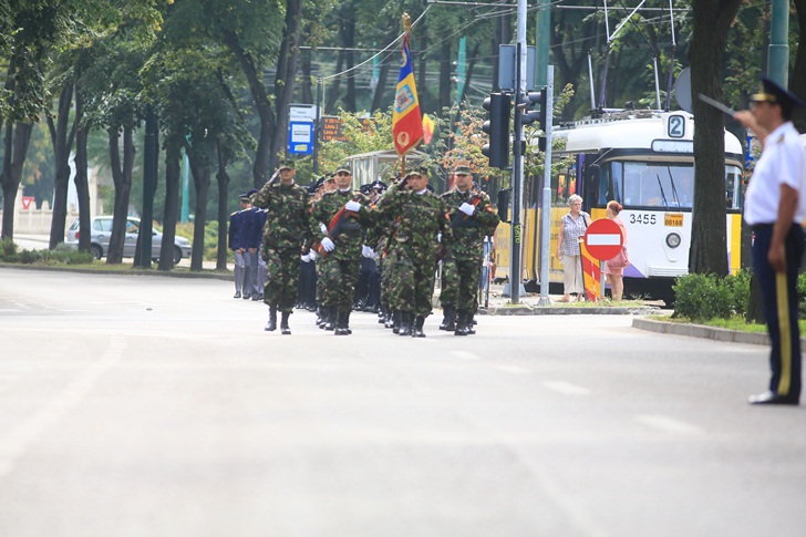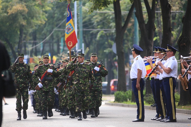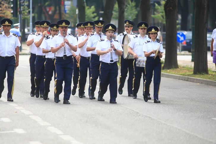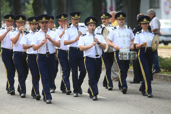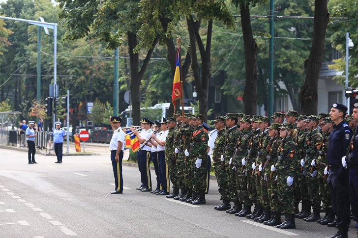 La finalul ceremonialului, militarii s-au retras, defiland pe ritmuri de fanfara.