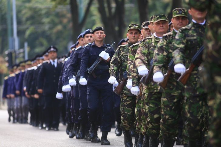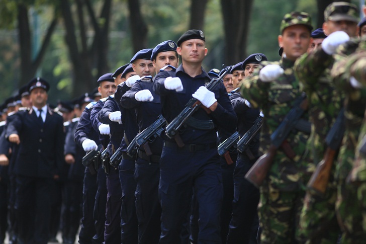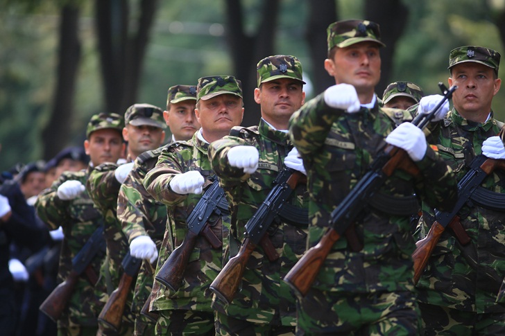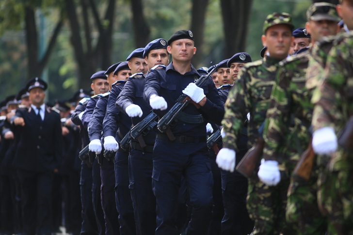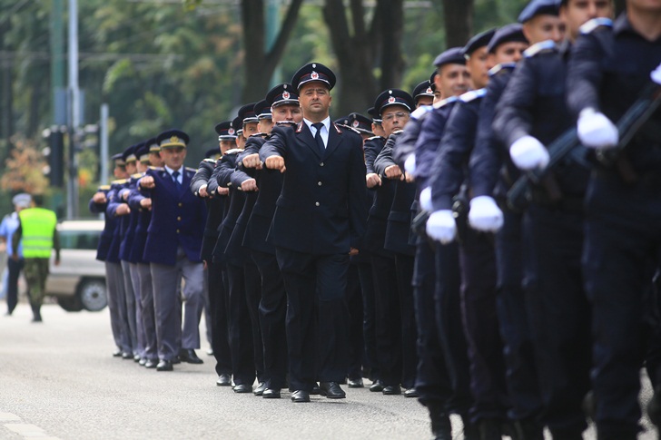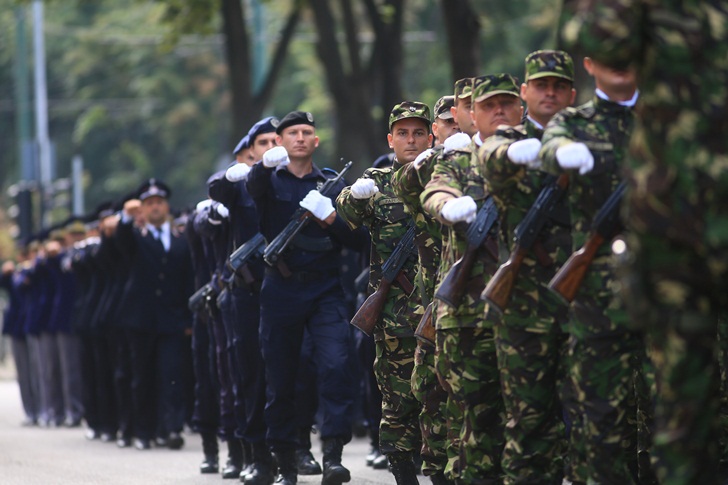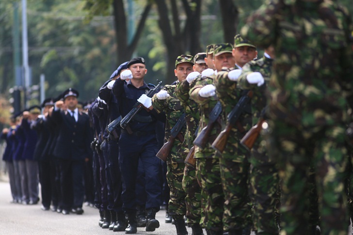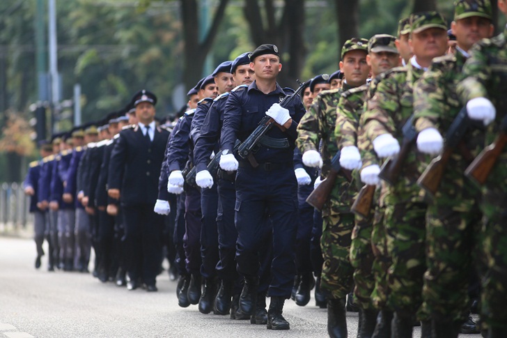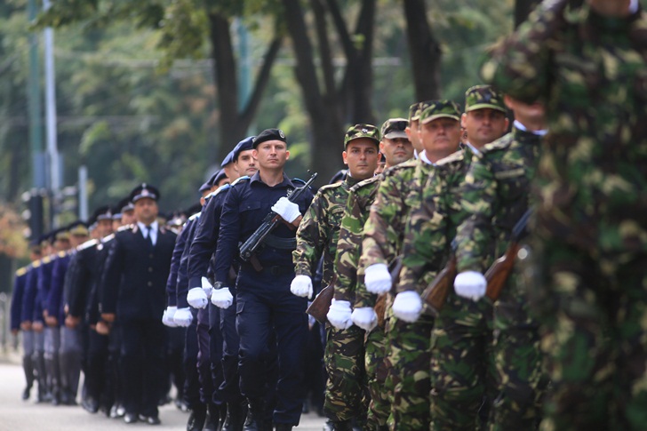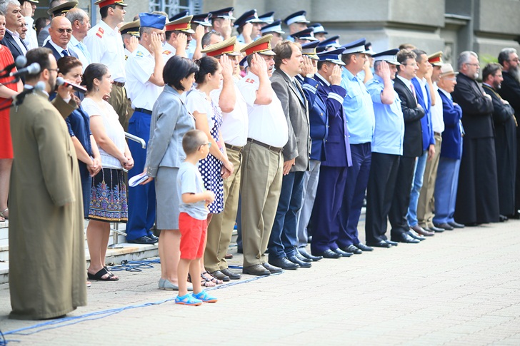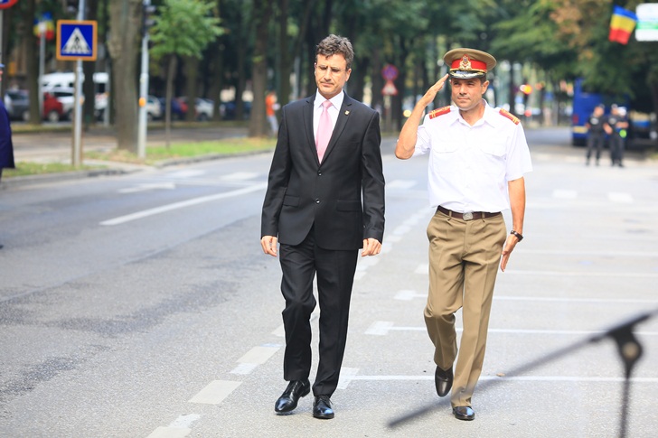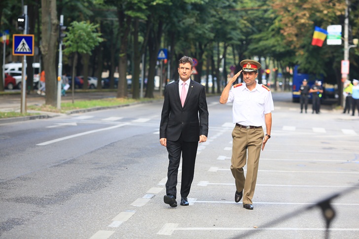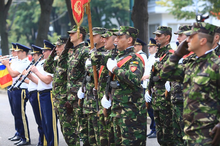 La finalul ceremonialului, militarii s-au retras, defiland pe ritmuri de fanfara.
