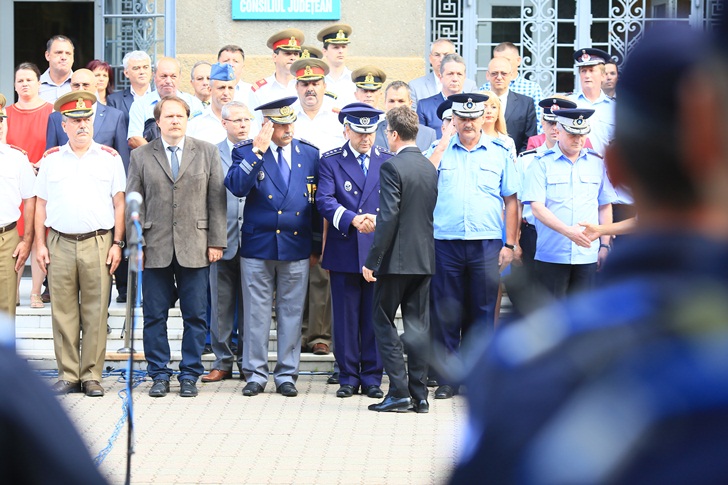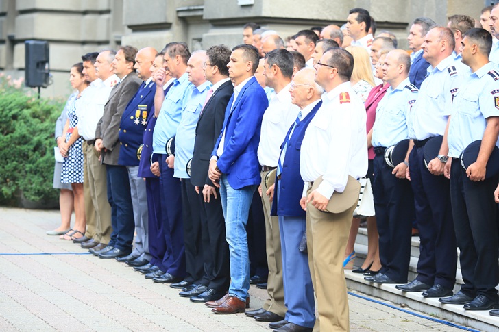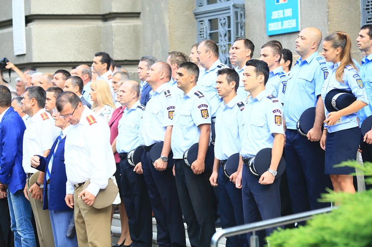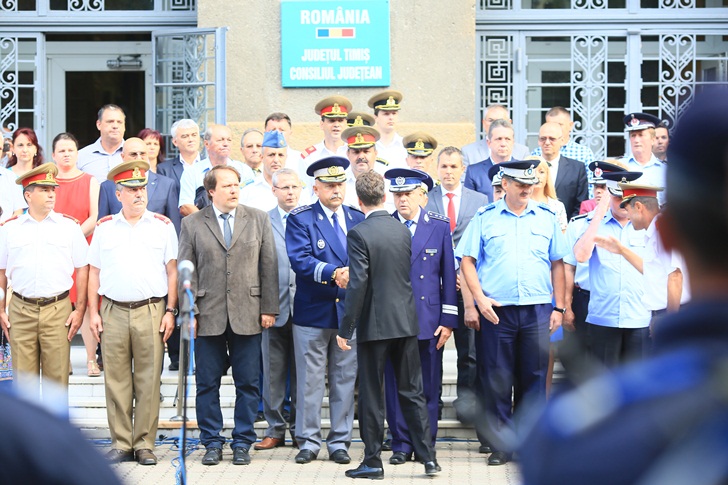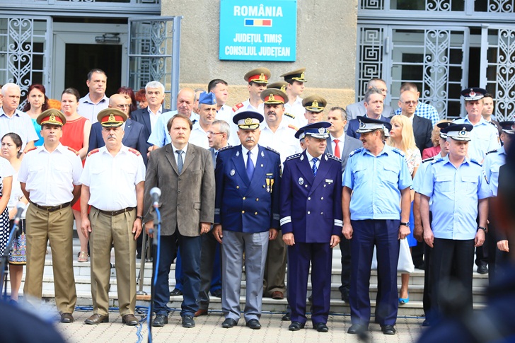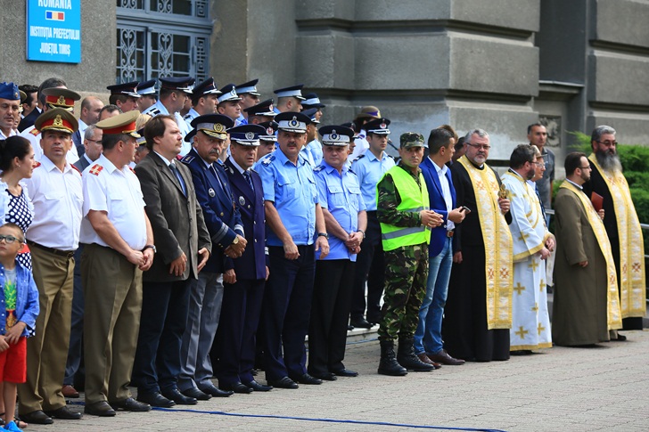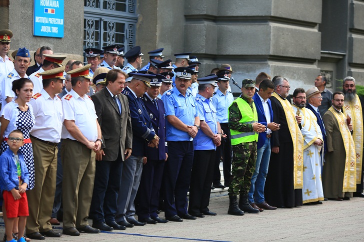 TIMISOARA. Putini timisoreni s-au adunat vineri dimineata, in fata Prefecturii Timis, pentru a urmari parada militara dedicata Zilei Imnului National al Romaniei. Au defilat militari, jandarmii si pompieri, in prezenta nelipsitelor oficialitati.