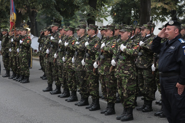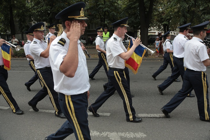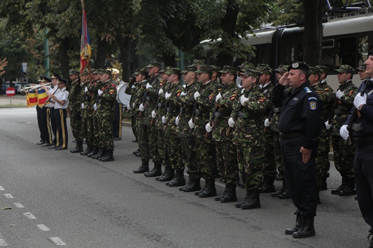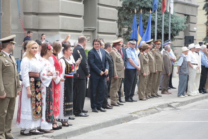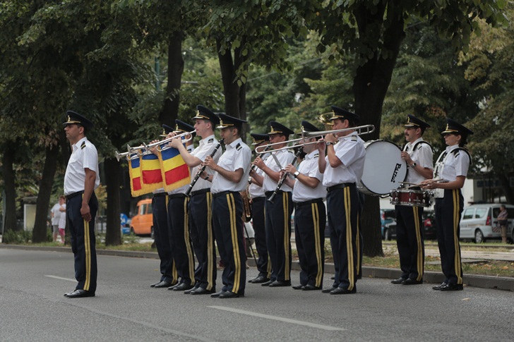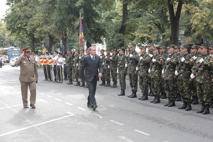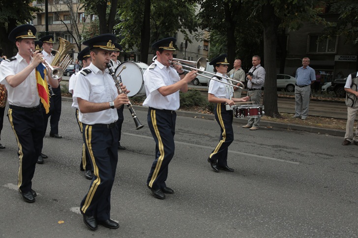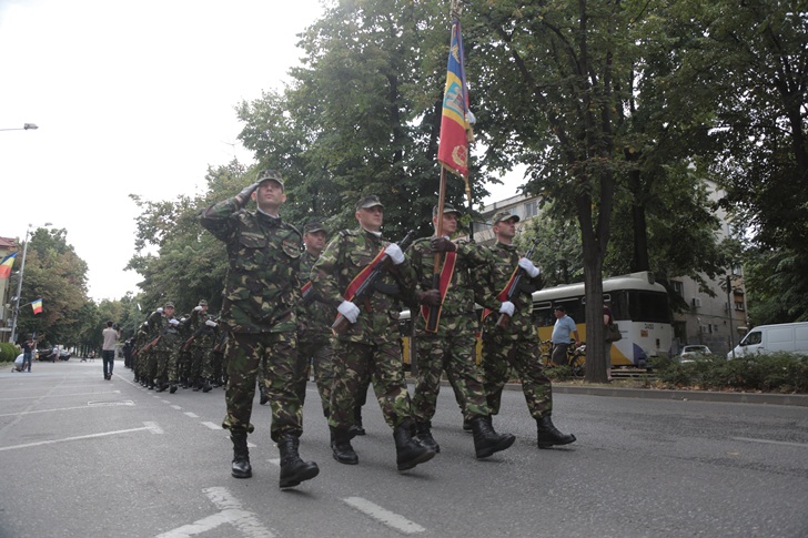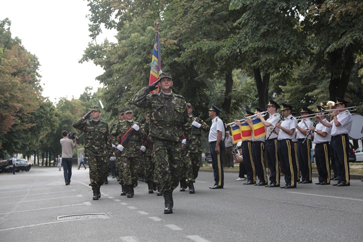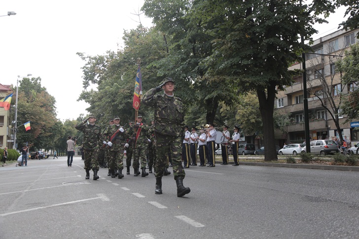 La finalul ceremonialului, militarii s-au retras, defiland pe ritmuri de fanfara, de la Prefectura, pana in Piata Libertatii, la Garnizoana Militara.