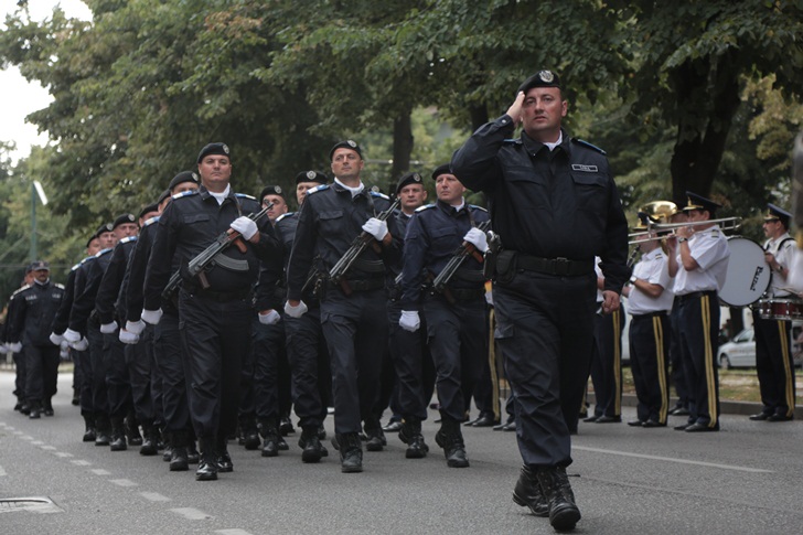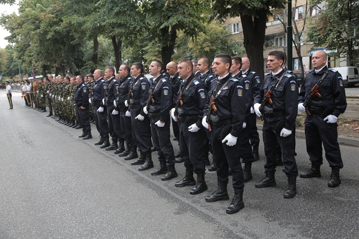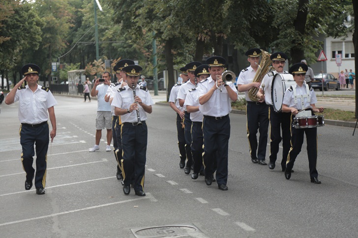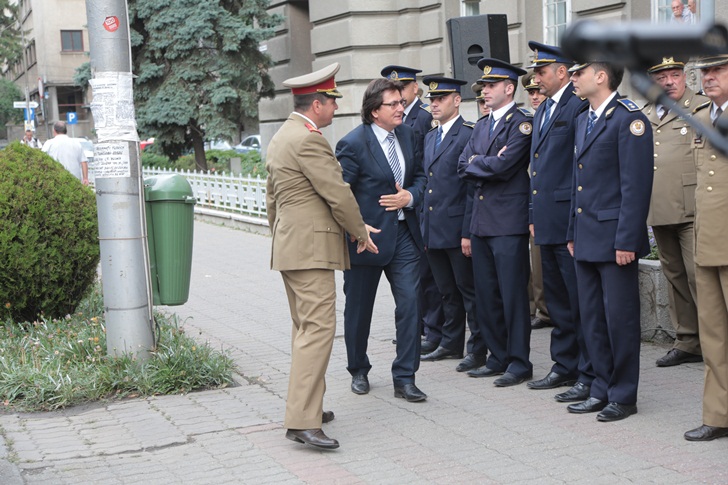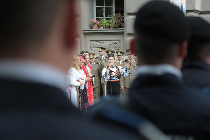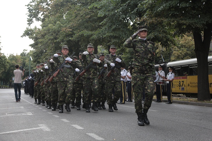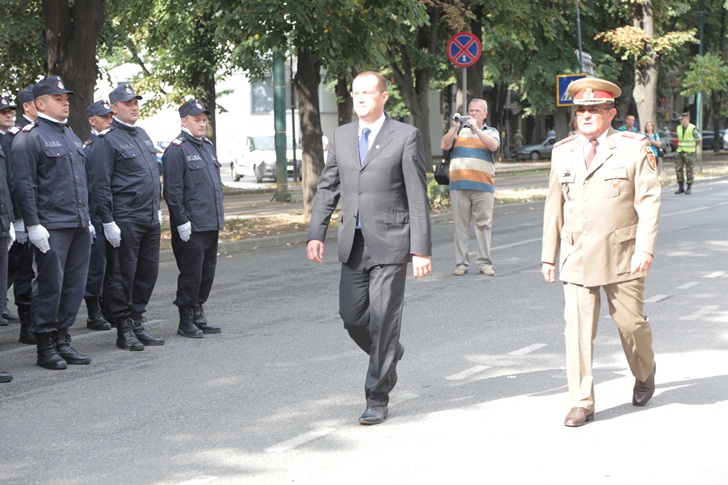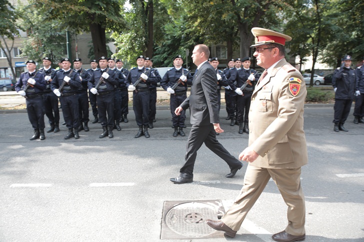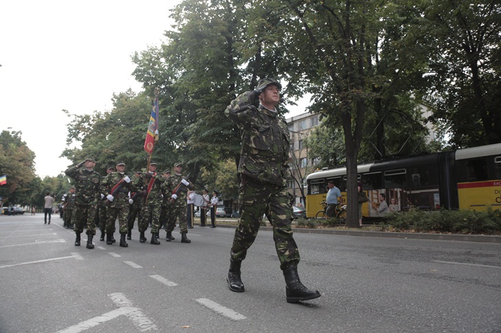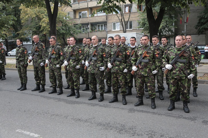 La finalul ceremonialului, militarii s-au retras, defiland pe ritmuri de fanfara, de la Prefectura, pana in Piata Libertatii, la Garnizoana Militara.
