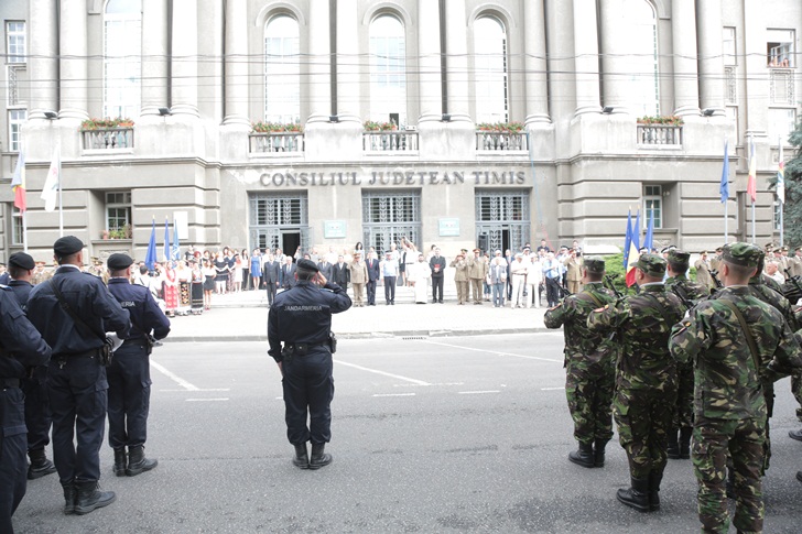 TIMISOARA. Cateva zeci de timisoreni s-au adunat miercuri dimineata, in fata Prefecturii Timis, pentru a urmari parada militara dedicata Zilei Imnului National al Romaniei. Au defilat militari, jandarmii si pompieri, iar tinerii au recitat poezii si au cantat melodii patriotice, in prezenta nelipsitelor oficialitati.